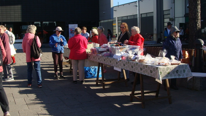 Yhdistyksen myyntipöydät markkinoiden alkaesssa